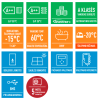 EER (energijos efektyvumo koeficiento) ir COP (naudingumo koeficiento) paskaičiavimas atliktas pagal EN 14511. Garso slėgio lygis išmatuotas esant 1 m atstumu nuo išorės bloko ir 1,5 m aukštyje. Šildymo garso slėgis išmatuotas esant +7 °C (vandens šildymas iki 55 °C).